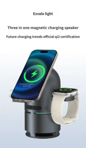 2025 new Qi2 certified 3-in-1 magnetic wireless charger for Apple desktop Bluetooth speaker