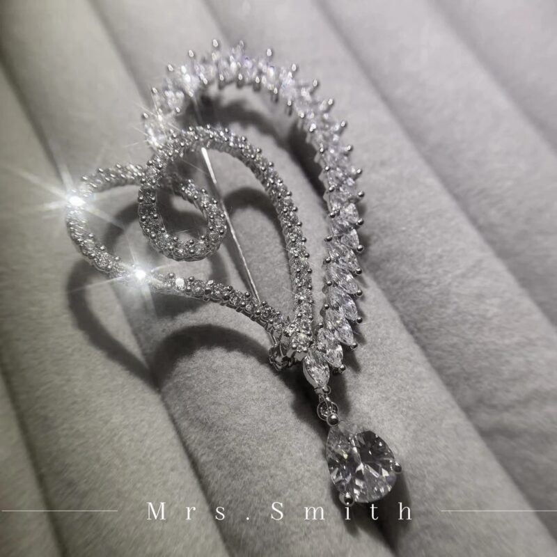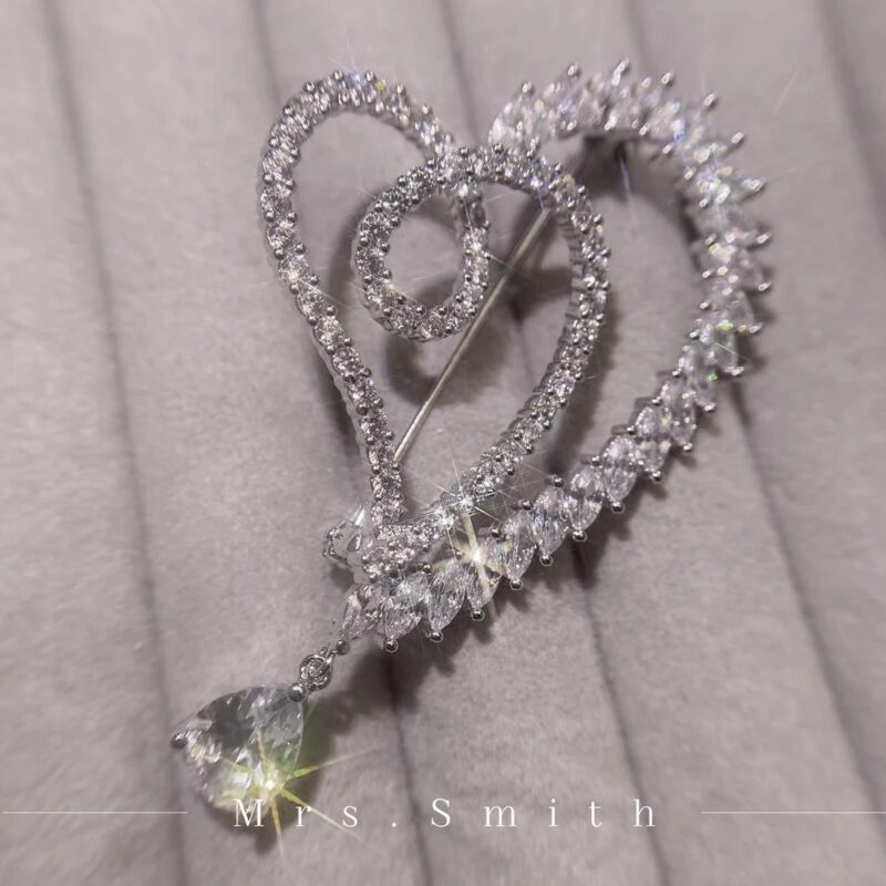 Copper alloy enamel brooch, light luxury, fashionable, simple, exquisite, sweet, elegant, fully diamond-encrusted
