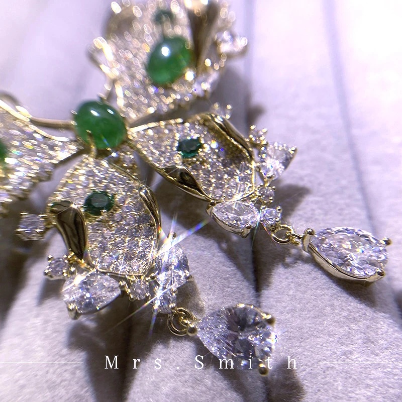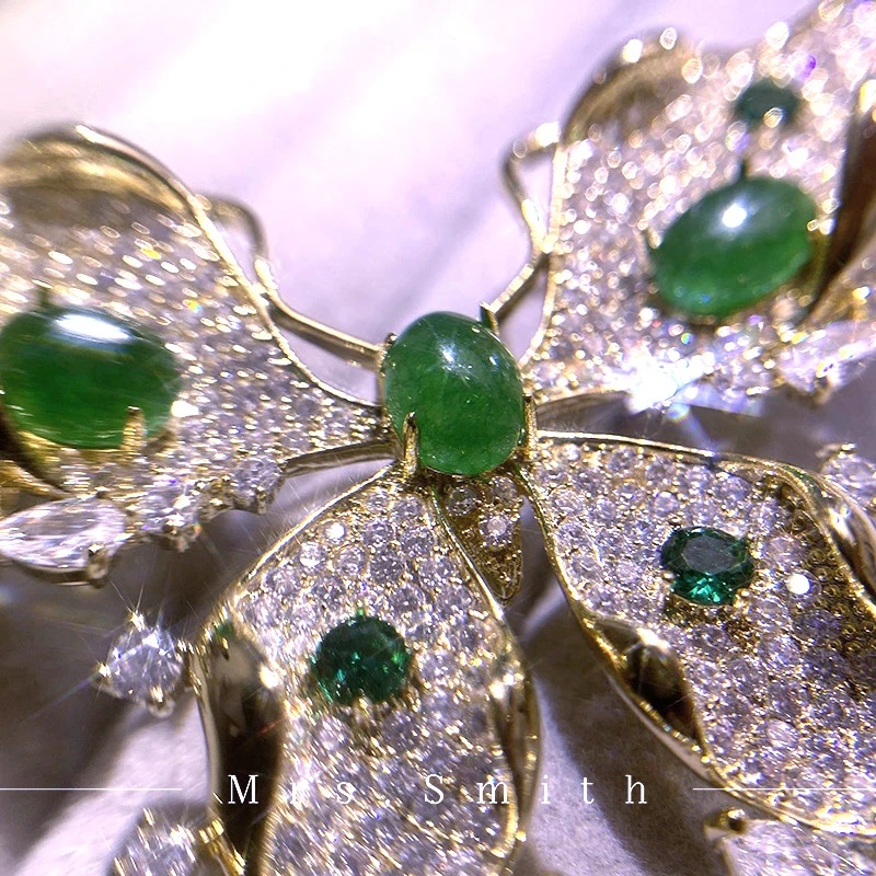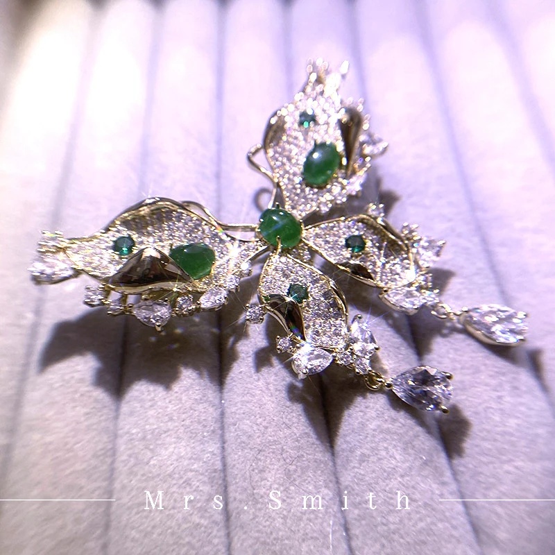 Copper alloy imitation crystal brooch, light luxury, high-end fashion, green vintage, heavy workmanship, inlaid luxury