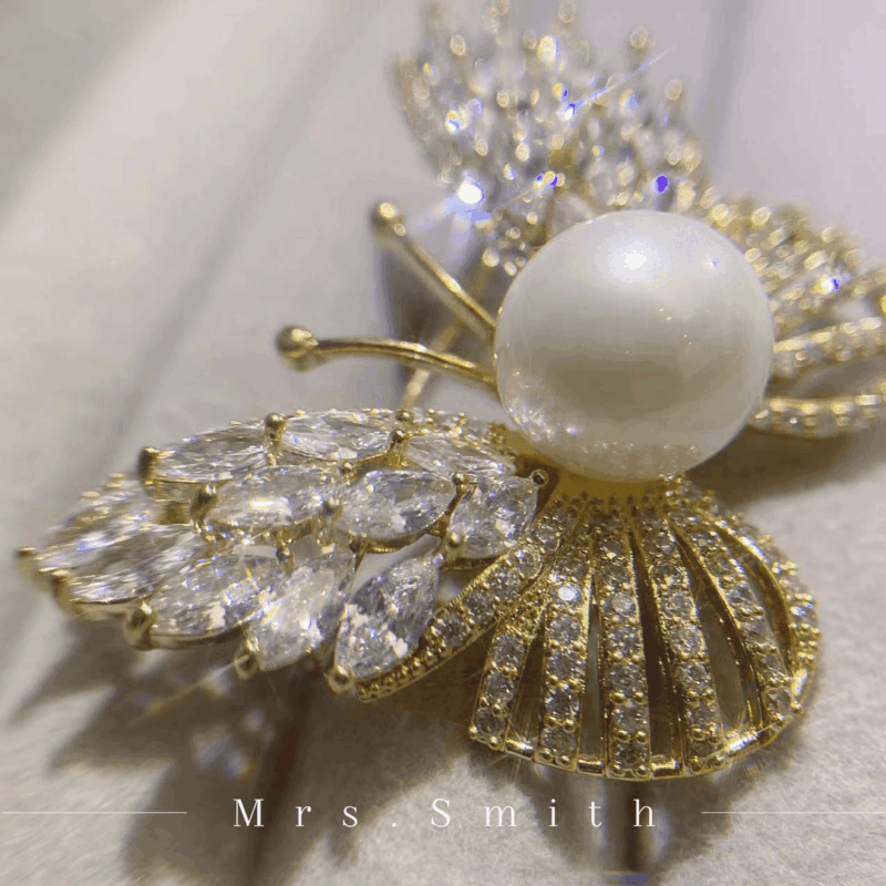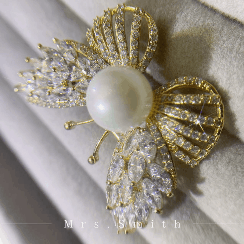 Copper alloy imitation pearl brooch, a luxurious, fashionable, vintage, classic, and elegantly crafted piece