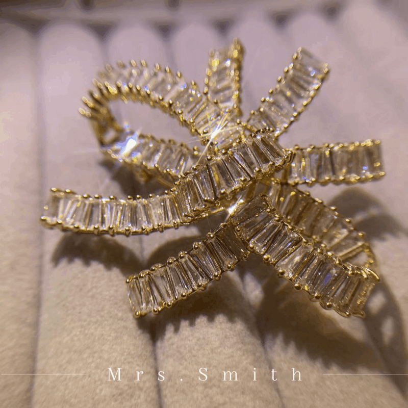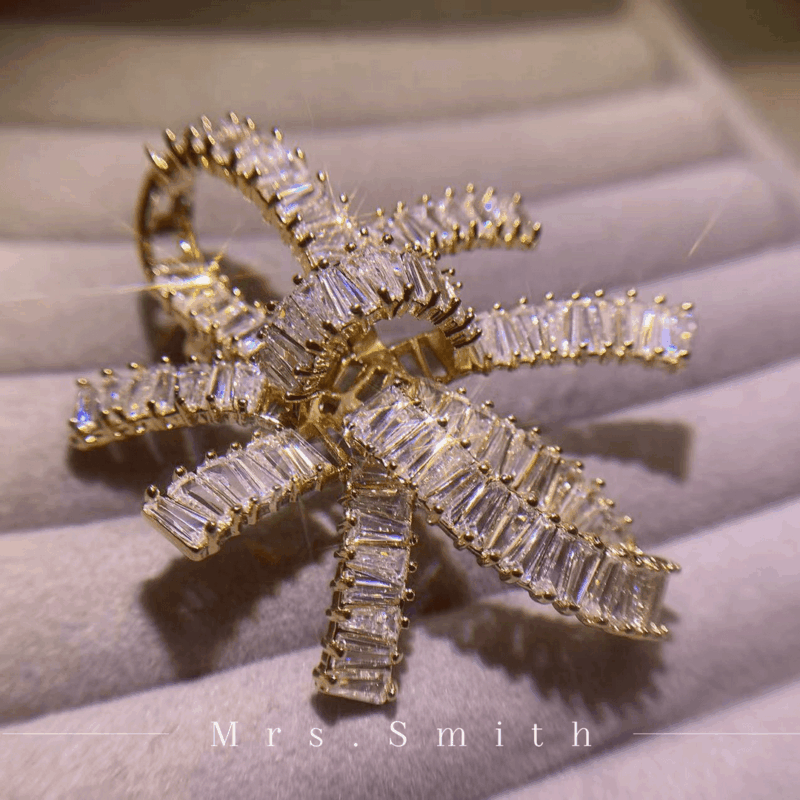 Copper alloy synthetic zircon brooch, light luxury and high-end, inlaid with full diamonds, luxurious and ultra-shiny, exquisite [elf ribbon]