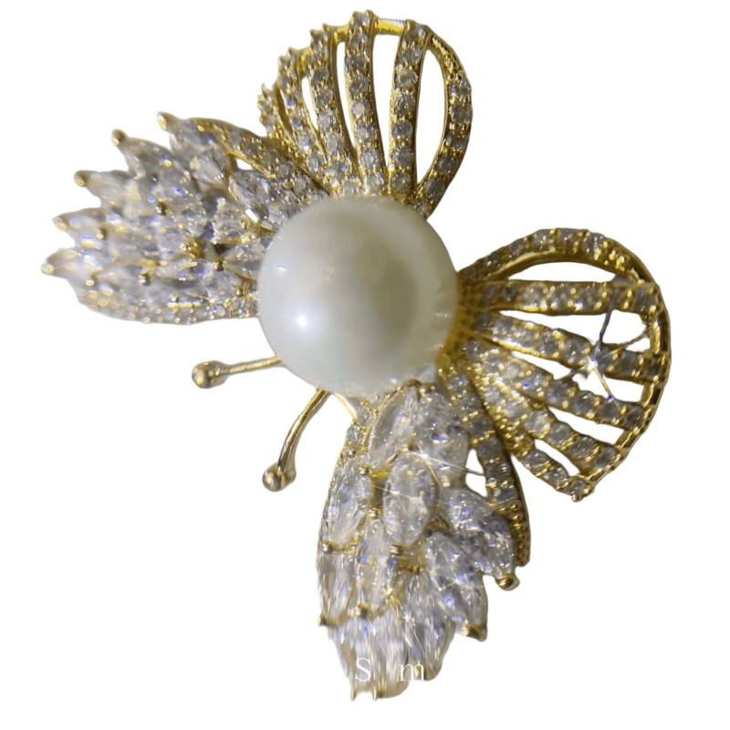 Copper alloy synthetic zircon brooch, light luxury and high-end, inlaid with full diamonds, luxurious and ultra-shiny, exquisite [elf ribbon]