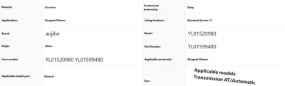 Be the first to review “Suitable for Peugeot 2008 P24C car parts brake pads YL01520980 YL01599480”