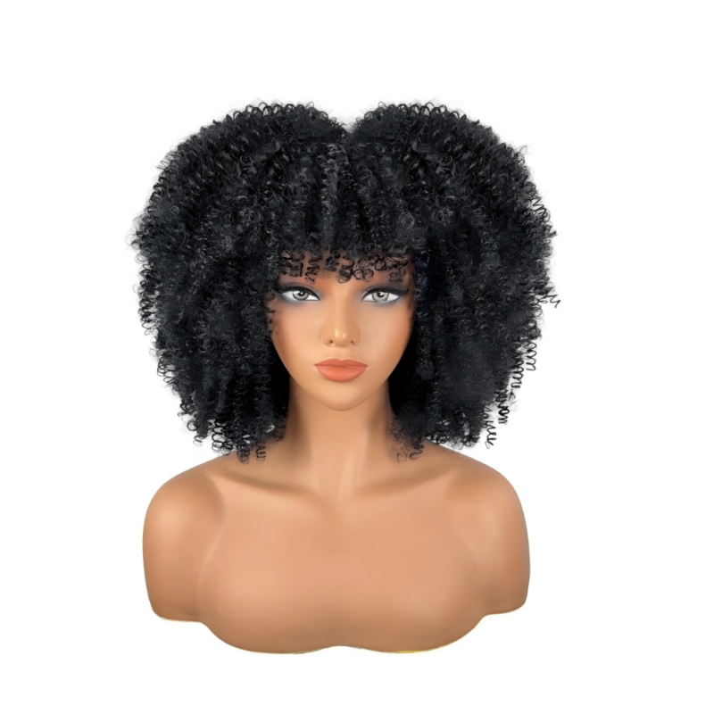 Wig, slightly curly, explosive hair style, female wig, high-temperature silk, multiple colors, fluffy, short, African small curly hair style, head cover
