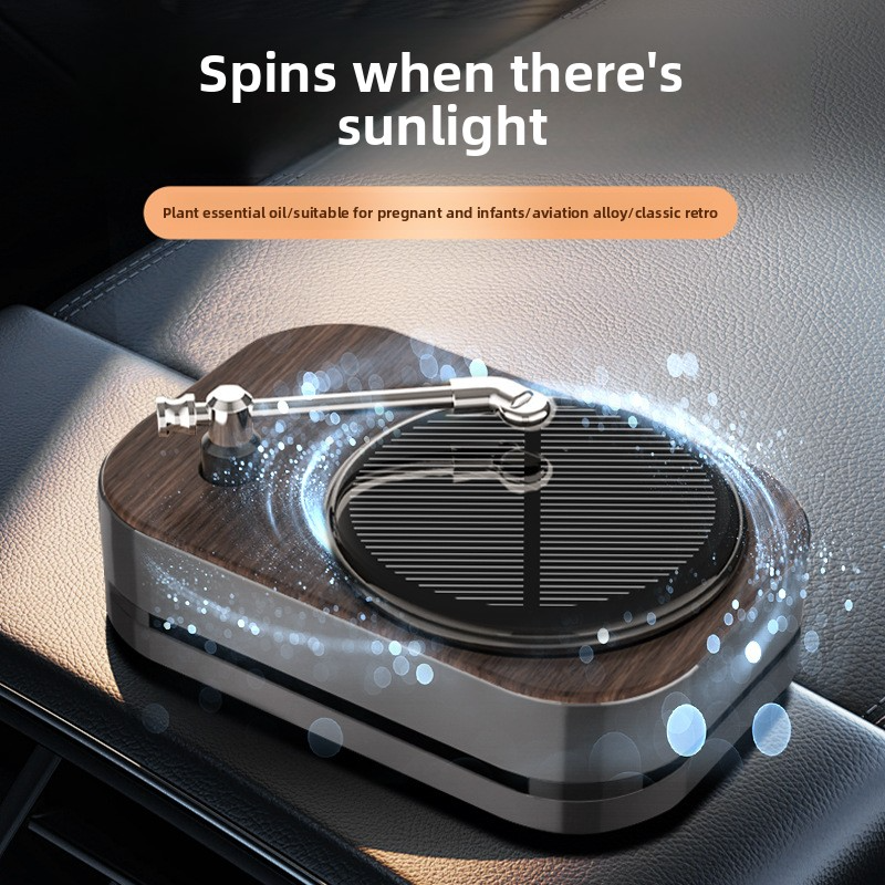 Upgraded Alloy Solar-powered Car Aroma Diffuser Retro Record Player Rotating Perfume Diffuser Car Accessories Scented Ornament